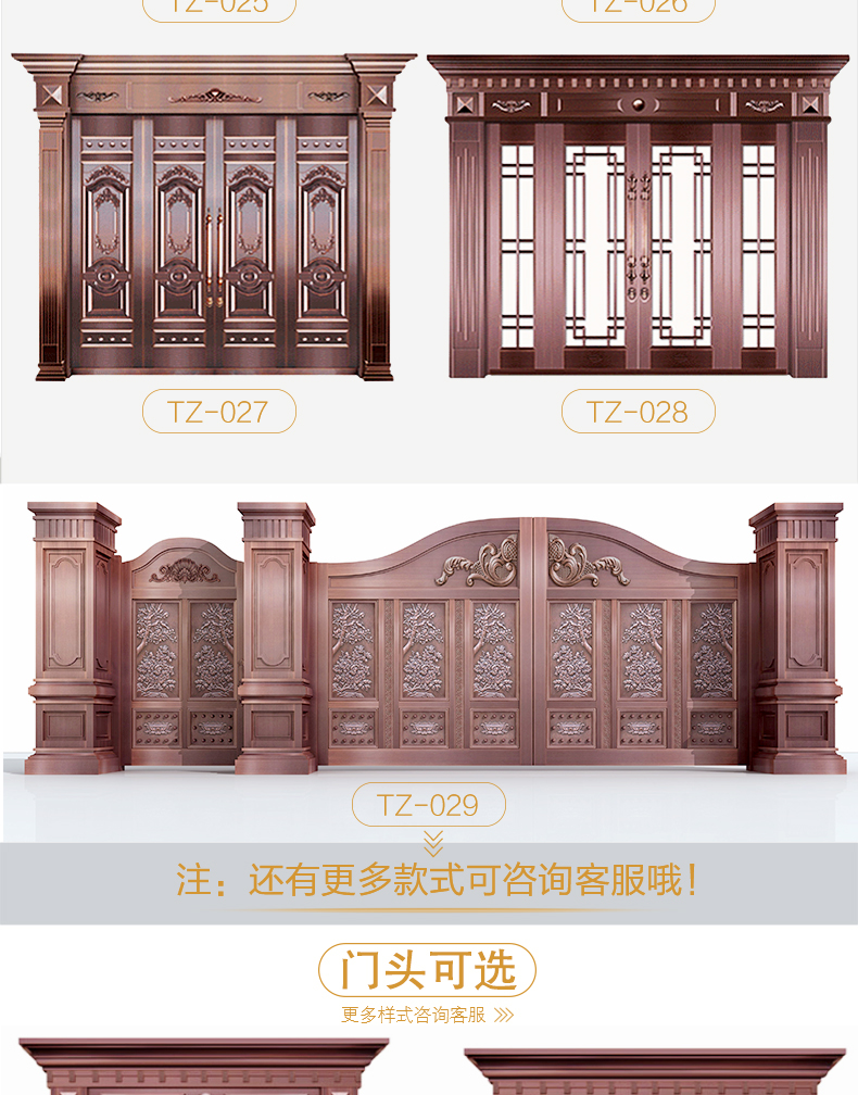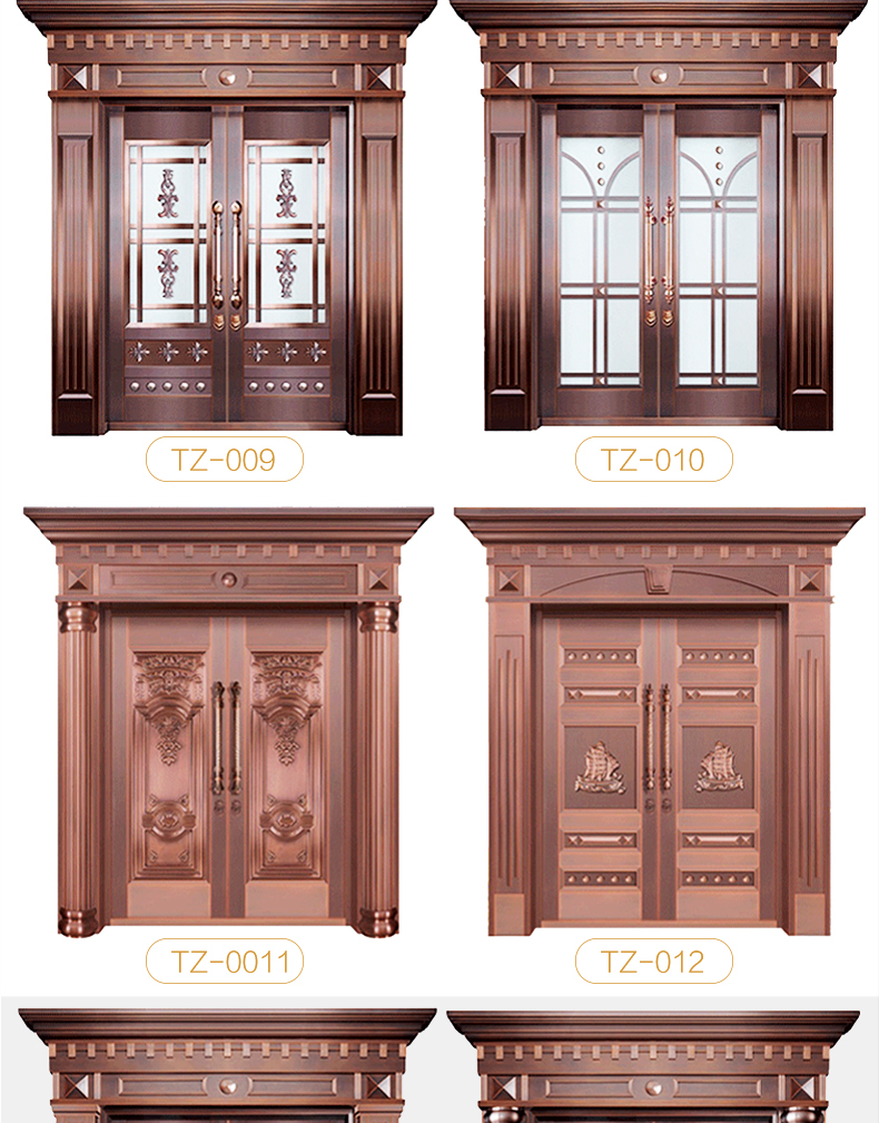 西安天卓銅門擁有經典模壓,無縫拼接,手工鍛打等多種制造工藝,制造出來的各種別墅銅門新穎靚麗,豪華壯觀。自主化生產、設計、研發,雙開、單開、子母、入戶庭院門暢銷陜西、安康、商洛、咸陽、漢中、銅川、渭南、延安、寶雞、榆林地區。