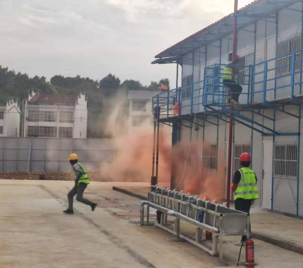 培訓結束后,谷城一中項目安質部部長王海波組織項目施工人員模擬可能出現的緊急安全事故現場,進行應急演練展示。